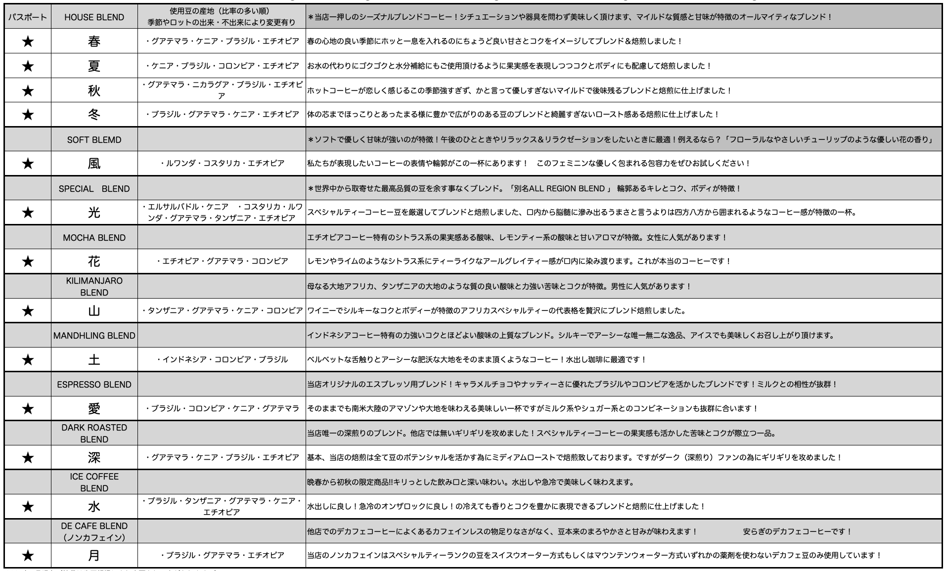 ☕️多彩なオリジナルブレンドは、きっとあなたのお気に入りが見つかるはず。ぜひ色々飲み比べてみてください。