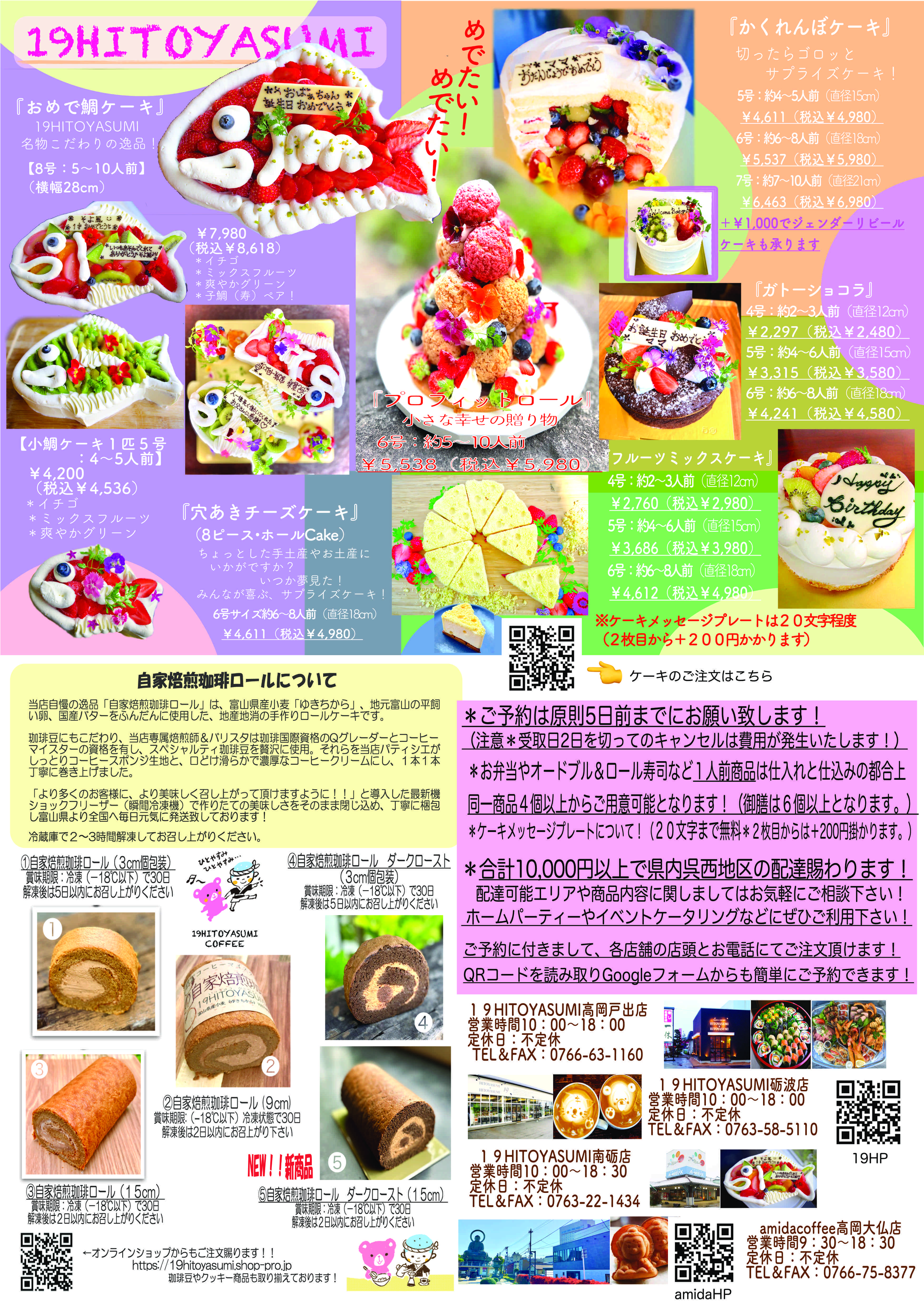 ご自宅でのパーティーやお祝い、ちょっとした手土産まで、皆様の「ひとやすみ」の時間を彩る商品が満載の総合チラシがリニューアルいたしました!